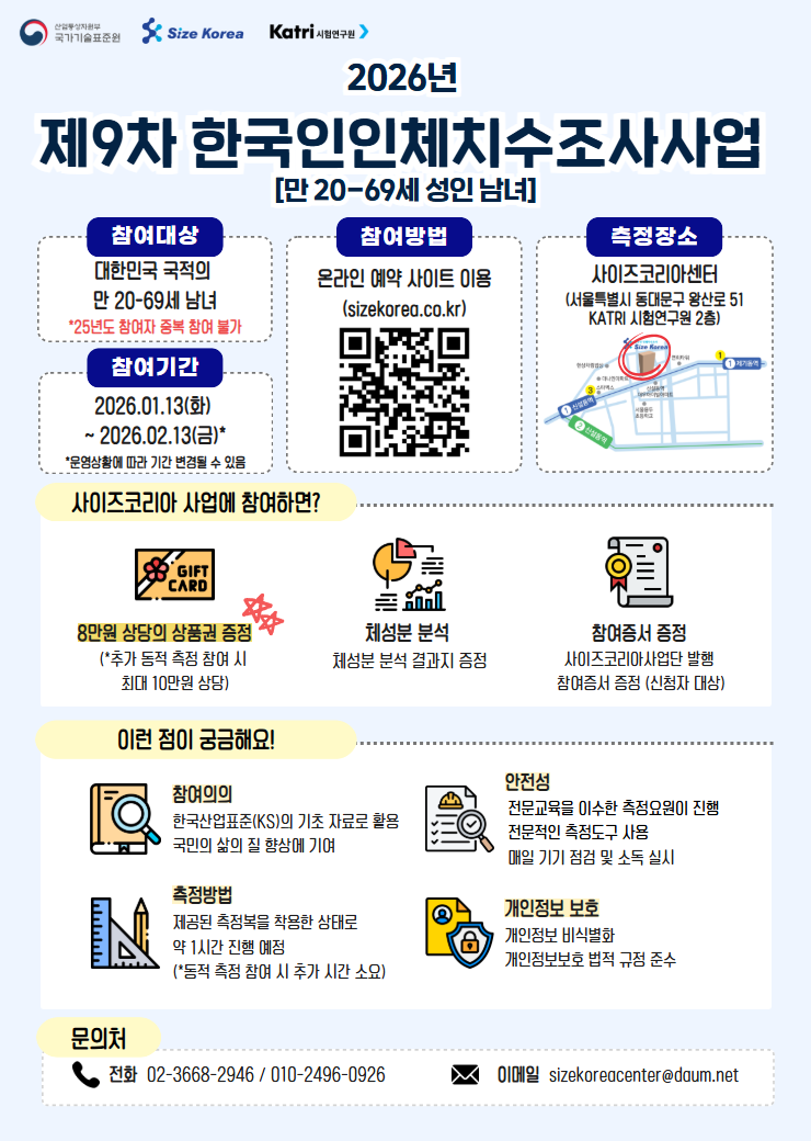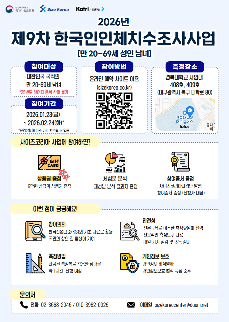 □ 문 의 처 : KATRI 사이즈코리아사업단(02-3668-2945/2946)